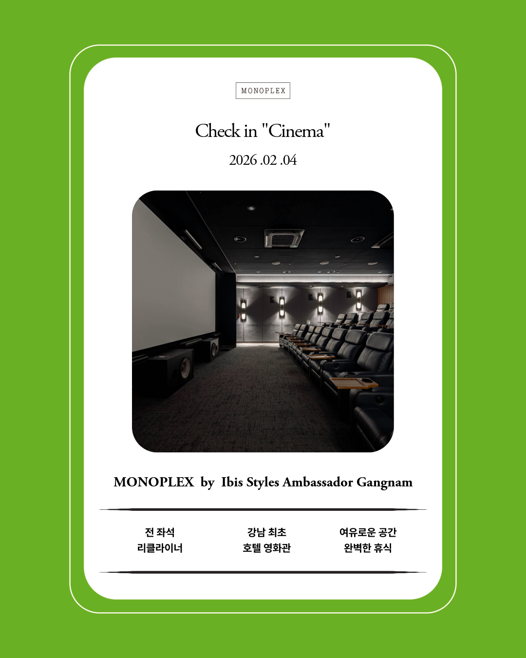 #이비스스타일앰배서더강남 #호텔영화관 #프리미엄영화관 #리클라이너 #강남영화관